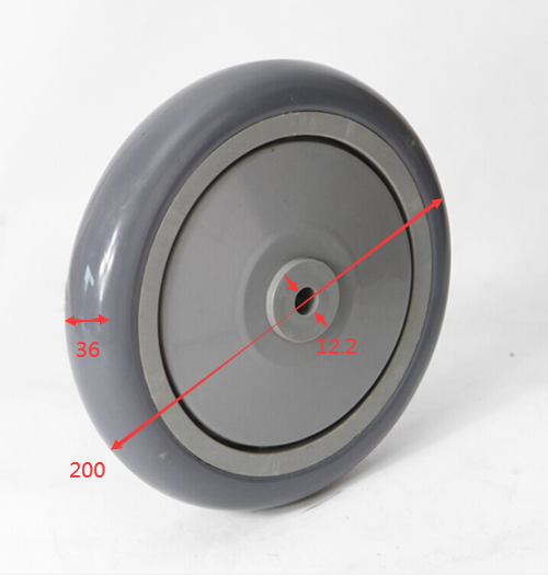 Wheel Dia (mm): 200Tread Width (mm): 36Center Hole Size (mm): 12.2Load Capacity (Kg): 200Wheel Material: PP+TPUWheel with bearingEN 12531