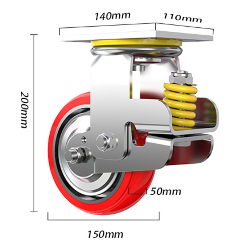 150 mm PU Wheel Spring Caster with plate without brake Price:¥ Id:S59-P-150-ZC