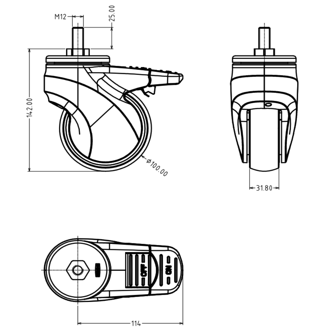 100 mm ABS Covered Medical Caster with threaded stem with brake Price:¥ Id:M20-L-B-100-ZG