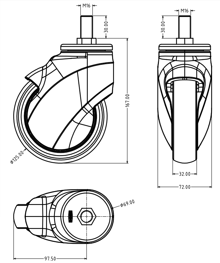 100 mm Iron Core Silicone Wheel Heat Resistant Rigid Caster