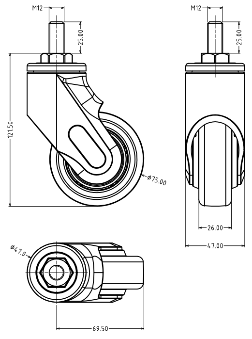 75mm 3" Swivel Casters Full-Plastic Medical Caster Wheel - 58 series Price:¥ Id:M58-L-75-ZG