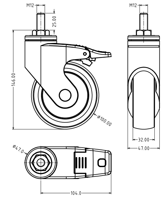 37mm Twin Wheels Caster