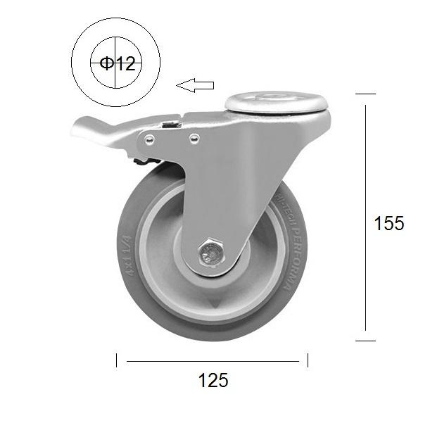 5 Inch Swivel Bolt Hole Caster TPR Wheel 125MM Industrial Castor With Brake For Trolley